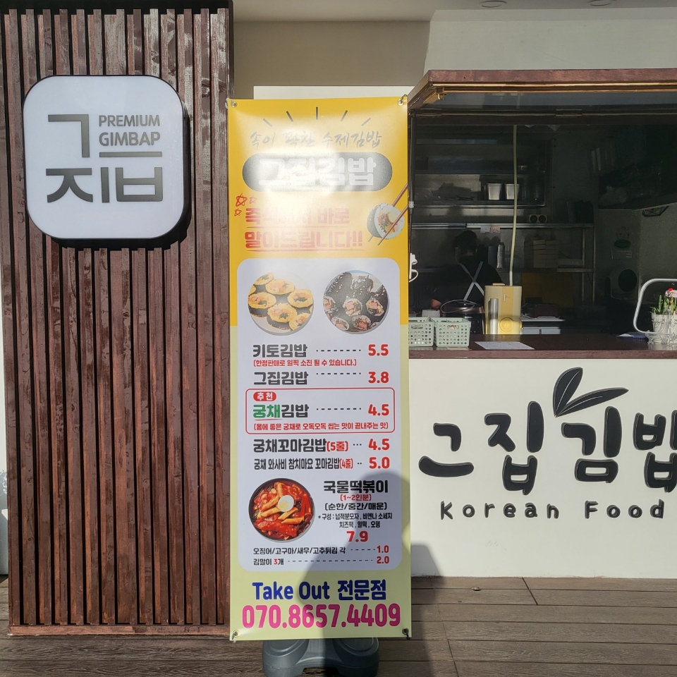 | 소개글: 그집김밥은 주문즉시 만들어 드리는 즉석 김밥집 입니다 take out 만 가능 하오니 매장 이용에 참고해 주세요!! 김밥메뉴중 돈가스는 주문 즉시 튀겨서 만들어 드립니다 튀기는 소요 시간 2~3분 참고하시고 주문 부탁드립니다 저의집 시그니쳐 김밥, 수제로 만든 궁채 김밥은 오독한 식감의 김밥이며, 키토김밥은 계란듬뿍 저탄고지 식품으로 다이어트에도 도움되머 계란의 고소한 맛도 일품입니다 라이스페이퍼로 만든 월남쌈김밥은 크래미와 파인애플 야채가 들아간 김밥입니다 와사비간장, 칠리소스, 땅콩소스 선택1 입니당 |