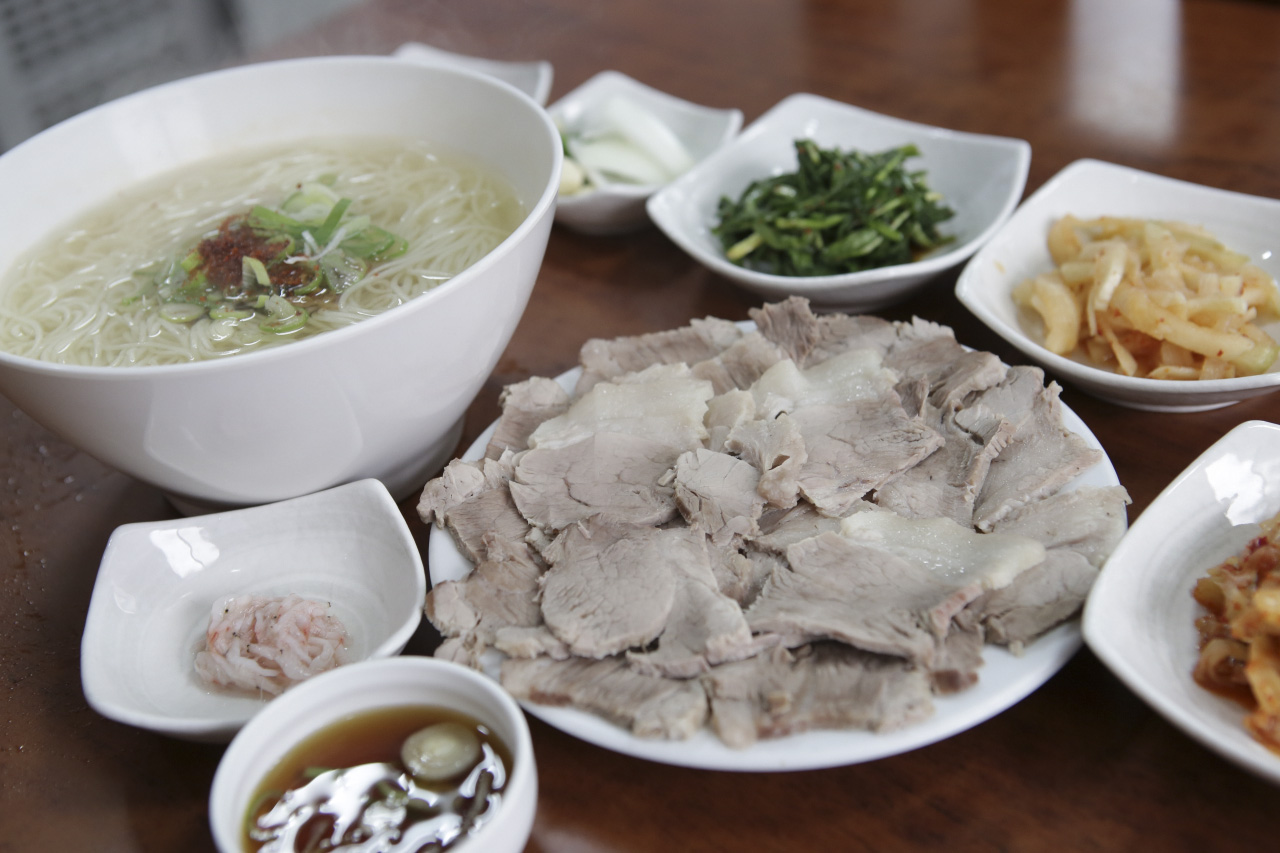 | 소개글: 100년 전통을 자랑하는 돼지 수육 전문점입니다. 무채, 부추무침, 특제소스와 함께 나오는 돼지 수육이 대표메뉴이지요. 국수에 무, 부추김치를 넣으시고 싱거우시면 새우젓으로 간해보세요 더 맛있습니다! 감사합니다^^ |